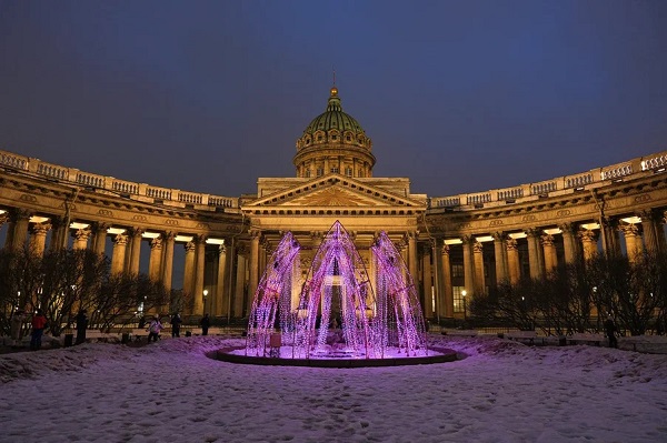 Зимние фонтаны Петербурга засияют фиолетовым цветов в честь Международного женского дня
