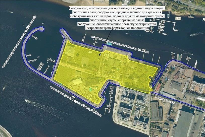 На участке площадью порядка 13 гектаров создадут учебно-тренировочную базу, эллинг, гараж и многофункциональный комплекс.